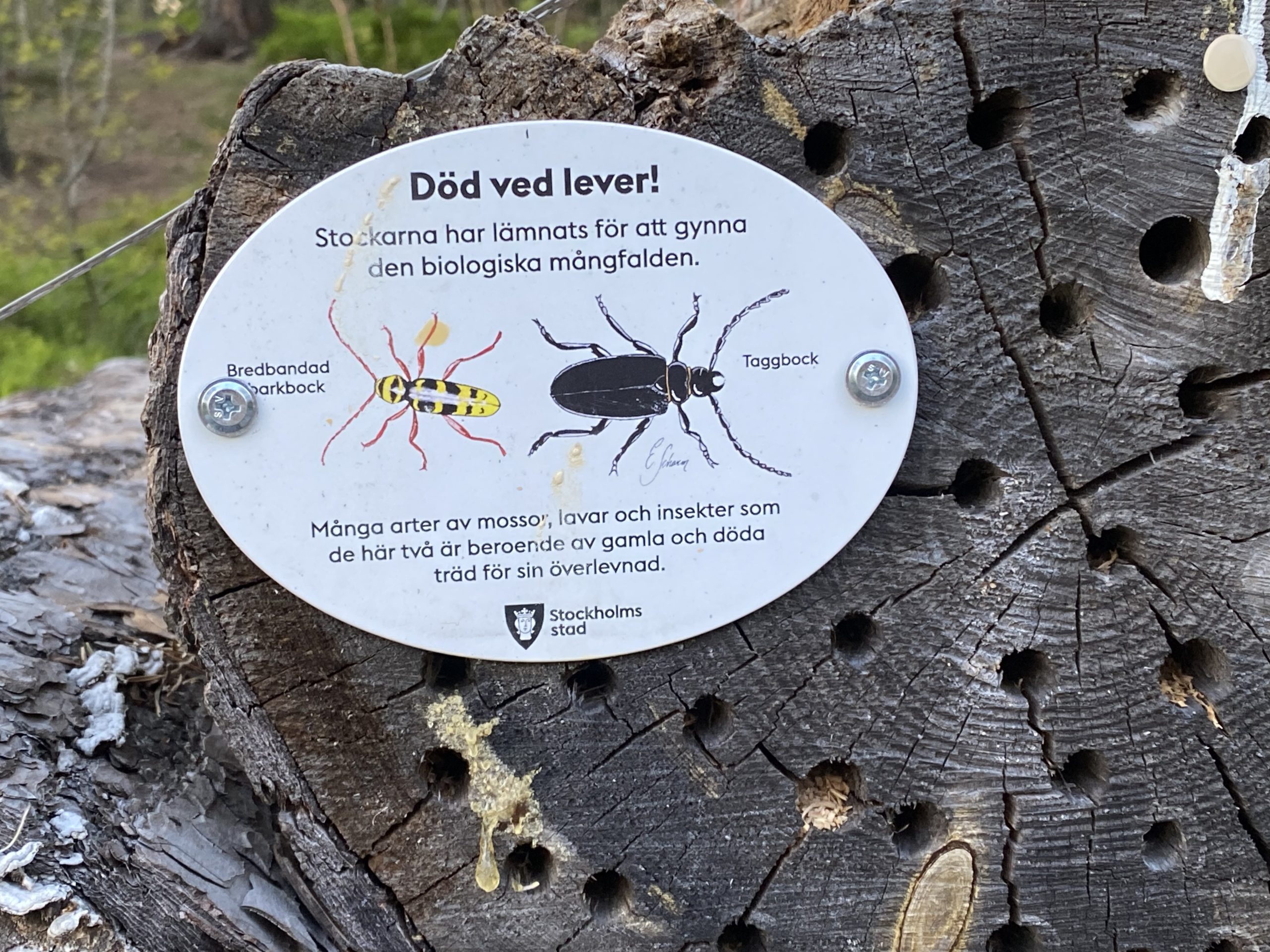 Infomations skylt om död ved i Årstaskogen. Bild: C/O City